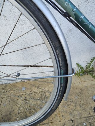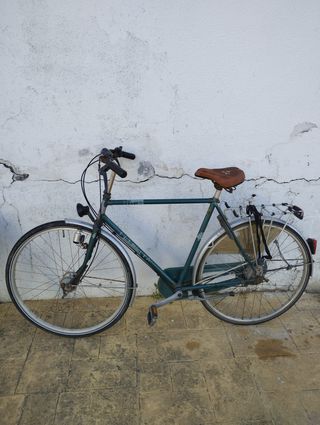 Bicicleta de ciudad en color negro. Ideal para desplazamientos urbanos. Sin haberse usado nada y guardado en sótano, completamente nueva y con su maletero de bici incluido - Cuadro de bicicleta. - Sillín negro. - Rueda delantera.