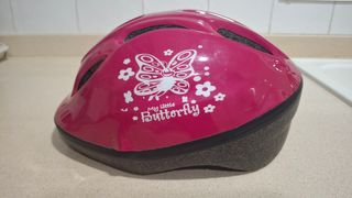 Casco infantil de bicicleta - 5 a 10 años. - Color rosa brillante. - Adorno de mariposa blanca y flores. - Texto My Little Butterfly. - Precio no negociable. - No hago envíos.