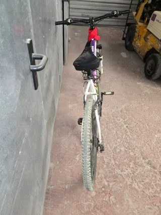 Bicicleta de montaña blanca y morada