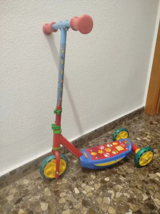 Patinete de tres ruedas con diseño de Mickey Mouse. Esta nuevo, usado tres veces, como se ve en la foto el dibujo como nuevo y puños como nuevos.