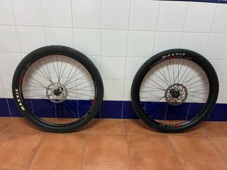 Juego de ruedas Shimano para bicicleta de montaña. - Tamaño de 27.5 pulgadas. - Preparadas para frenos de disco. Con cubiertas Maxi