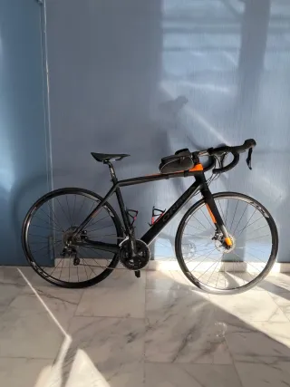 Bicicleta Orbea Avant M30 reacondicionada por Tuvalum y solo 3 usos posteriors. En perfecto estado. Lista para rodar. Año: 2016 Peso aproximado: 8.8 Kg Material: Carbono Cambio trasero: Shimano 105 Desviador delantero: Shimano 105 Desarrollo de los platos: 50/34 Velocidades del cassette: 11v Desarrollo del cassette: 11/32 Bielas: Shimano 105 FC-R7000 Longitud de las bielas: 172.5mm Tipo de frenos: De disco Frenos: Shimano BR-RS505 Tija de sillin: FSA SL-K Carbon Sillin: Prologo Llantas Shimano RX Talla 53 (altura 165-175) Para ver mejor las fotos o más detalles, puedo comentar por privado. Guardada siempre colgada de la pared