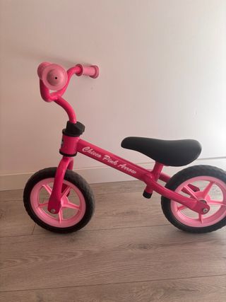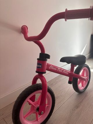 Bicicleta de equilibrio rosa de la marca Chicco, modelo Pink Arrow. Ideal para los primeros paseos. - Diseño sin pedales. - Ruedas de goma. - Manillar con puños de goma.