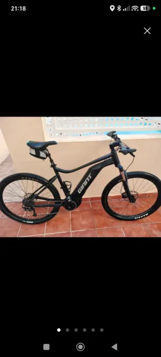 Bicicleta eléctrica Giant en color negro. Ideal para disfrutar de tus rutas. - Cuadro de aluminio. - Ruedas Maxxis. - Frenos de disco.