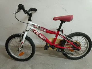 Bicicleta infantil Conor Funky de 16 pulgadas, ideal para los más pequeños. - Diseño llamativo en blanco y rojo. - Ruedines incluidos para mayor estabilidad. - Sillín ajustable en altura.
