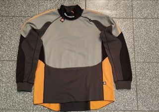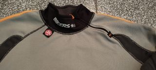 Camiseta técnica de manga larga para ciclismo. - Diseño multizona con paneles de diferentes tejidos. - Cuello alto con cremallera. - Combinación de colores gris, negro y naranja. - Logo de BIKERS en el cuello. HAGO ENVÍOS