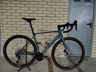 Bicicleta de gravel marca Superior con transmisión Shimano GRX de 11 velocidades. Talla M - Cuadro de carbono. - Frenos de disco hidráulicos. - Ruedas de gravel fulcrum nuevas - Color verde mate. - Neumaticos Pirelli nuevos - Potenciometro magene PES de 170mm de longitud - Pedales shimano nuevos. - Desarrollo 44 - 11/51 - Manillar integrado carbono.