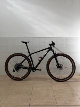 Vendo Trek Procaliber de carbono OCLV. Equipa bielas SRAM XX de carbono con plato de 32 dientes, transmisión monoplato x 12 piños con manetas Shimano XT, y frenos Shimano XT. Las ruedas son de carbono tubeless ready. La bici monta una horquilla FOX con geometría G2 y recorrido de 110 mm. Incluye tija Bontrager. La bicicleta está en buen estado general y con mantenimiento al día. Talla: ML.