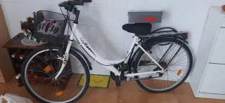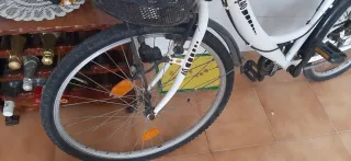 Bicicleta de paseo en color blanco, modelo City40. Ideal para desplazamientos urbanos. - Cesta delantera. - Portabultos trasero. - Guardabarros. - Reflectantes en ruedas.