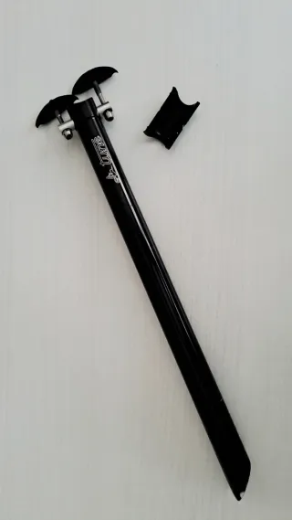 Tija de sillín HENMI de aluminio, color negro. Incluye cierre rápido y llave Allen. Nuevo sin usar. Vendo por error de medidas. - Diámetro: 27.2 mm - Longitud: 400 mm - Marca: HENMI - Material: Aluminio - Color: Negro