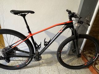 Bicicleta de montaña para enduro, lista para la acción. - Cuadro de carbono. - Horquilla RockShox. - Ruedas Vittoria Barzo. - Suspension trasera - 12 piñones - neumaticos al 75% originales desde su venta - manillar de 100 - cambio de marchas sram nx - frenos hidraulicos sram guide rsc - tija telescopica - ruedas de 90 la bicicleta esta tal cual se compro, no se ha usado a penas por tiempo. el estado de los neumaticos es lo que indica que se ha usado poco ya que son los que venian con la bici. no tiene golpes fuertes ni caidas fuertes. me la quito porque no la uso