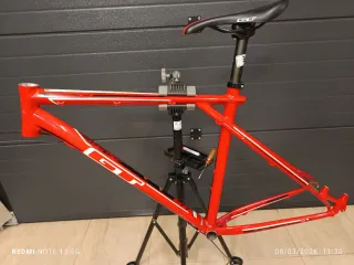 Cuadro de bicicleta GT Avalanche 2.0 en color rojo, diseñado para ruedas de 26 pulgadas. - Modelo Avalanche 2.0. - Tamaño de rueda 26. - Color rojo con detalles blancos y negros. - Con tija, cierre y asiento originales. - Talla XL. He dejado las fundas viejas para que sirvan de guia si se quieren cambiar. Marcas de uso pero sin bollos ni fisuras. El peso es solo el cuadro.