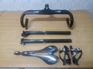 piezas carbono ritchey wcs. SE HACEN LOTES DE DIFERENTES PIEZAS A ELEGIR. Manillar de carbono liso con brillo Aero integrado: medidas disponibles de manillar: 400, 420 y 440mm. 44, 42 o 40cm. medidas disponibles de potencia: 80, 90, 100, 110 y 120mm. 8, 9, 10, 11 y 12cm. medida de unión a la horquilla 28.6mm. (medida estándar). Peso 360 gramos. Precio 150€. Tija de carbono 3K recta o offset 25mm de retroceso. Medidas de: 27.2 30.9 y 31.6mm x 400mm de largas. peso tija recta: 250gr. peso tija retroceso: 205gr. precio: 60€. Cierre para tijas carbono 3K: precio 15€. portabotes carbono 3K. 30€. cada unidad. sillín carbono 60€.