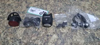 Lote de accesorios para bicicleta en excelente estado. -comprobador de cadena -tapa potencia -araña para pipa de dirección -Accesorios colocar ciclo computador - juego luces de colgar en casco o portaherramientas. - juego luces delantera y trasera - Bomba de aire. - 2 Portabidón. - Bidón amarillo. - Puños de manillar Megamo negros. - Timbre. - Cierres rápidos para tijas 31'6.