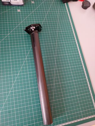 Tija de sillín con medio año de uso. Aluminio. Desmontada de una MTB (BH Lynx Race). Diámetro 31,6mm. Largo 400mm