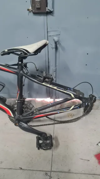 Cuadro de bicicleta de montaña BH OVER X, solo falta ponerle llantas de 26. Perfecto como para primera bici de un crío, todo funciona bien, sin golpes. Suspensión delantera. Negociable - Cuadro de aluminio. - Color negro con detalles rojos y blancos. - Incluye tija de sillín y sillín. - Horquilla delantera blanca.
