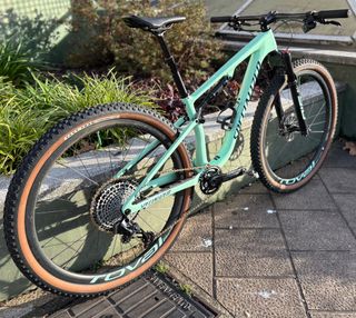 Specialized Epic Expert, Talla S, 2021. • Cuadro de carbono FACT 11m suspensión trasera RockShok BRAIN (100 mm), 5 posiciones ajuste y ajuste rebote • Horquilla RockShox SID SL BRAIN (100 mm) , Ajuste Brain y rebote SRAM Eagle AXS electrónico 12v Piñón Garbaruk 10-52 Cadena Sram XX1 Bielas Sram XX1 170 mm 34T potenc. Quarq Dzero • Ruedas Roval Control Carbon (fast track T5 tubeless nuevas ) • Frenos XT, discos Galfer nuevos, pastillas nuevas • Sillin Syncros Belcarra V2.0 nuevo • Manillar de Carbono ONOFF HELIUM • Tija telescópica Divine 80 mm. -Pedales XTR -Peso 11 KG
