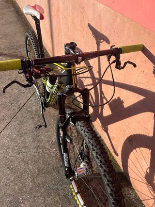 Berria bravo con componentes tope gama,cuadro de carbono sin golpes ,horquilla de aire con bloqueo al manillar rock shox sid,ruedas de 29 crossmax slr ,bielas monoplato de carbono sram x0 ,casette y pedales automáticos shimano xt,pulsadores y cambio trasero de 11v xtr ....etc muy pocas bicis de 29 mas ligeras que esta...así como está la tija de el sillín en las fotos me queda perfecta a mi que mido 1,74...bici perfecta lista para usar ,la vendo o la cambio por una clásica de carretera de calidad....: colnago,pinarello ,titanio, campagnolo, Banesto, bititan, master ,regal ,arabesque