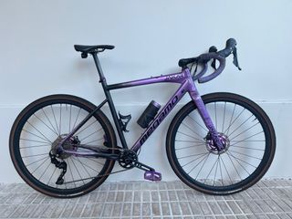 Megamo jakar de gravel en muy buen estado,talla 54 así como está la tija de el sillín en las fotos me queda perfecta a mi que mido 1,74,cubiertas nuevas 700x38 ,transmisión shimano grx... está en monoplato pero las manetas aceptan si se quieren poner dos platos ,manillar plano de carbono con potencia integrada, tija de carbono, se da tal cual las fotos con GPS nuevo que tiene hasta el plástico protector, igual está muy cargada de lila pero cambiando los pedales ,el bote porta herramientas o alguna cosa más ya cambia la cosa bastante ..la podría dar con pedales automáticos si se prefiere ,cambio por clásica de carretera de calidad