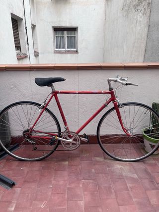 Bicicleta de carretera urbana vintage. Color Rojo Vinilos Ciclos Lara Talla pequeña 52-53 Tija y desviador Zeus. Ruedas de cierre rápido de doble pared. Frenos, sillín para restaurar/sustituir. Cámaras de aire y Cubiertas recién cambiadas. Regalo Cámara de aire extra. Es una pieza muy bonita. Para recoger zona Atocha / Palos de la frontera No envios