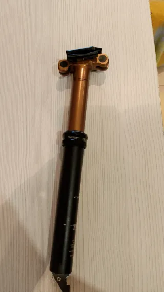 Tija telescópica de la marca Fox, modelo Transfer con acabado Kashima. 30.9 y con adaptador a 31.6 En perfecto estado Mide 310mm total 100mm recorrido - Color dorado y negro. - Mecanismo de ajuste de altura. NO NEGOCIABLE