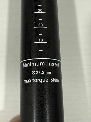 Tija de sillín de carbono para bicicleta. - Diámetro: Ø27.2mm - Par máximo de apriete: 5 Nm - Indicaciones de inserción mínima.