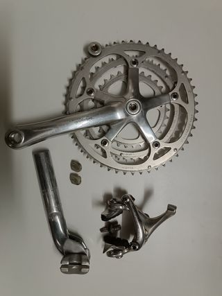 Biela derecha Racing T de 170mm y 3 platos con los dos tornillos,Puente de freno modelo Athena, y tija modelo Brevetti todo ello de la marca campagnolo
