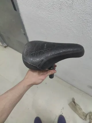 Sillín de BMX con tija Pivotal en color negro. Presenta un diseño clásico y robusto, ideal para la práctica de BMX. - Material: Polipiel. - Color: Negro. - Sistema: Pivotal.