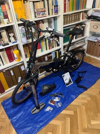 Bicicleta eléctrica plegable B'TWIN, prácticamente sin estrenar. Ideal para desplazamientos urbanos y fácil de guardar. - Modelo plegable. - Sistema de asistencia eléctrica. - Incluye cargador y manual.