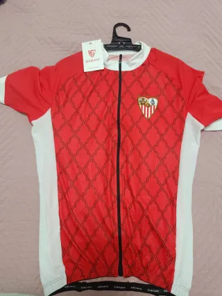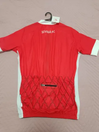 Maillot oficial de ciclismo del Sevilla FC. - Diseño exclusivo con el escudo del club. - Tejido transpirable y ligero. - Cremallera completa frontal. - Mangas cortas.