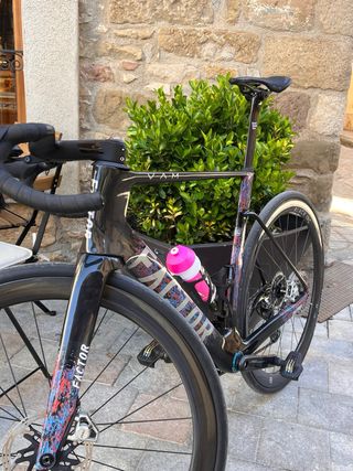 Factor OSTRO VAM 2024 Edición Tour de Francia Cuadro: Factor OSTRO VAM TDF Edition Talla: 56 Grupo: SRAM RED AXS 2x12 - Powermeter - 48/35 Ruedas: Black Inc FORTY FIVE Rodamientos CeramicSpeed en: - Dirección - Eje de pedalier - Bujes