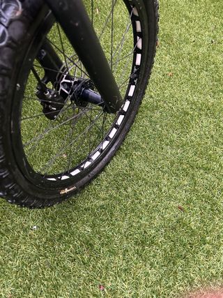 Llantas delantera y trasera DT Swiss de 26 pulgadas. - Llantas de aluminio color blanco - Incluyen discos de freno de 6 tornillos. Y nucleo - Neumáticos resecos de estar parados varios años