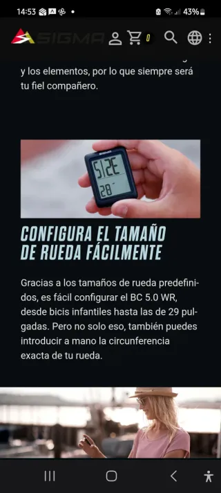 Cuenta kilómetros Sigma BC 5.0 WR, un compañero ideal para tus salidas en bicicleta. Configura fácilmente el tamaño de tu rueda. - Tamaños de rueda predefinidos. - Permite introducir la circunferencia de la rueda manualmente.