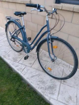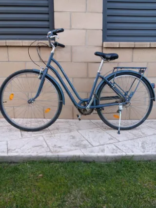 Bicicleta urbana Elops en color azul. Ideal para desplazamientos diarios. - Cuadro de bicicleta. - Ruedas de bicicleta. - Sillín de bicicleta. - Manillar de bicicleta. - Guardabarros. - Portabultos trasero.