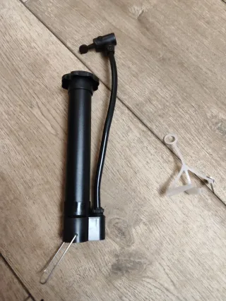 Inflador de neumáticos para bicicleta, sin estrenar. - Color negro. - Incluye accesorio de sujeción. Nuevo a estrenar
