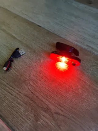 Luz trasera LED para bicicleta, ideal para mejorar tu visibilidad. - Color rojo brillante. - Incluye cable de carga USB. - Diseño compacto y ligero. Luz led teasera para bicicleta tiene varios modos de iluminacion con cable USB para carga nueva a estrenar Puedes mirar en mi perfil mas ofertas gracias