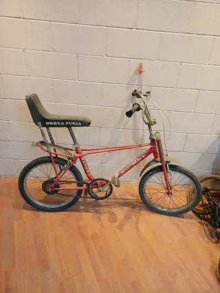 Bicicleta clásica Orbea Furia de color rojo. Un modelo icónico para coleccionistas o para revivir la nostalgia. - Sillín con el nombre ORBEA FURIA. - Ruedas de 20 pulgadas. - Guardabarros delantero.