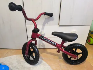 Bicicleta de equilibrio para niños, ideal para aprender a montar. - Color rojo metálico. - Diseño RED BULLET. - Ruedas negras. - Asiento negro.