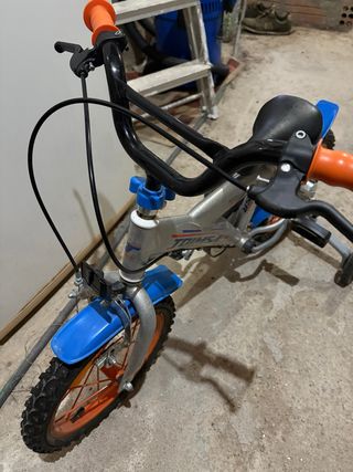 Bicicleta infantil con ruedas de 14 pulgadas. - Manillar con puños naranjas. - Frenos delanteros.