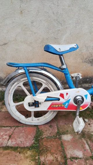 Bicicleta infantil de 16 pulgadas, ideal para los más pequeños. Su diseño combina el azul y el blanco para un estilo llamativo. - Ruedas de 16 pulgadas. - Manillar blanco. - Asiento negro con detalles azules. - Frenos delanteros y traseros.manetas de aluminio, hay que poner unos manguitos nuevos por lo demás está perfecta