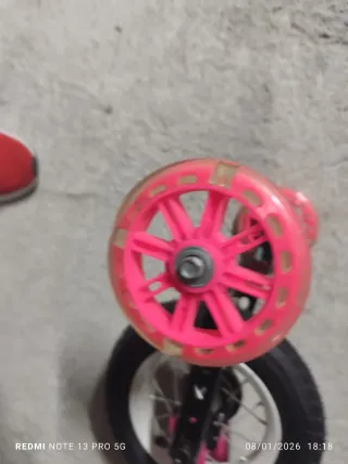 Bicicleta de aprendizaje con ruedas de color rosa brillante. Ideal para iniciarse en el mundo de las dos ruedas. - Ruedas delanteras de plástico transparente con detalles en rosa. - Rueda trasera de goma negra.