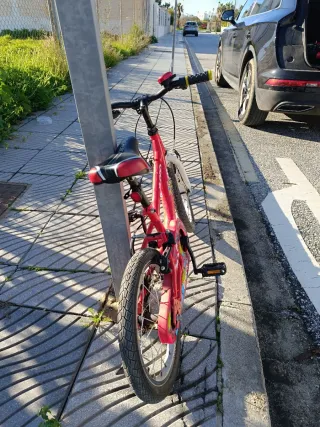 Bicicleta infantil en buen estado, lista para usar. - Cuadro de color blanco con detalles en rosa. - Ruedas de 20 pulgadas. - Frenos manuales.
