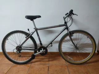 Bicicleta de montaña de 26 pulgadas. 18 velocidades - Cuadro de color rojo. - Marca Mariner. - Ruedas de 26 pulgadas. Usada con señales del uso pero en muy muy buenas condiciones ideal para regalar o para ti mismo. Sólo necesita el cambio de la cubierta trasera que se pinchó y ya no se utilizó más. Los frenos en muy muy buen estado no necesita hacerle nada. La cadena necesitaría un engrase del tiempo que lleva parada, ojo! no está oxidada sólo sería para su buen mantenimiento. ( Se entrega otra cámara en perfecta condiciones para cambiar si es necesario más adelante)