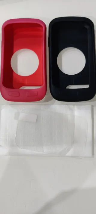 Protege tu GPS Garmin Edge 1000 con esta funda y protector. - Funda de silicona en color rojo - Funda de silicona en color negro. - Protector de pantalla transparente. - En buenas condiciones,el rojo a perdido un poco el color por la parte frontal del uso. Carcasa,trek,scott,orbea,specialized,bicicleta de montaña,carretera,giant.