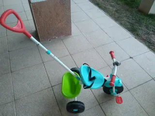 Triciclo evolutivo para niños pequeños, con un diseño divertido y adaptable. - Asiento ergonómico en color azul con cinturón para peques más pequeños - Ruedas resistentes. - mango para empuje (quita y pon)