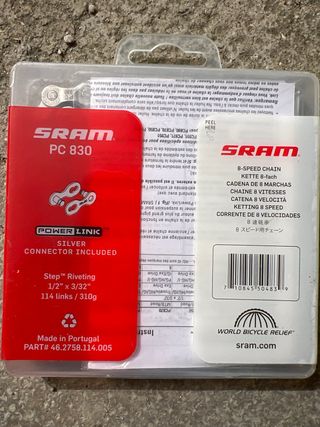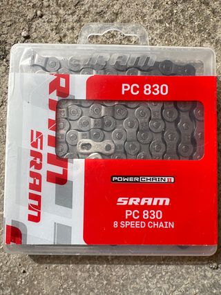 Cadena nueva a estrenar sin abrir SRAM PC 830 para bicicletas de 8 velocidades. Diseñada para ofrecer un rendimiento fiable. - Modelo: PC 830 - Velocidades: 8 - Marca: SRAM - Tipo: PowerChain II