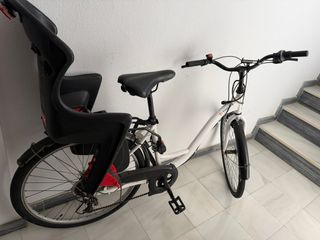 Bicicleta blanca con asiento infantil. - Silla de seguridad para niños. - Color blanco. Precio negociable.