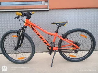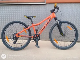 Bicicleta infantil Scott Scale 24"+ conertes noves. Bon estat i poc us, tota de sèrie tal i com venia de fàbrica. També inclou cobertes amb més tacs noves per estrenar, les de sèrie estan bé, volia posar unes cobertes més per btt però ha quedat petita abans de posar-les.