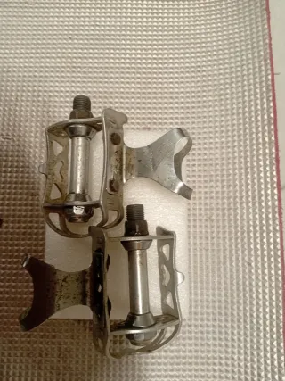 Conjunto de pedales de estilo clásico para bicicleta. aluminio , ligeros en pefecto estado de uso. para clasica vintage eroica carreras carretera vitus bh contini alan cube decathlon razesa orbea trek carbono . rosca antigua ,pequeña - Material metálico plateado. - Diseño abierto con soporte para el pie.