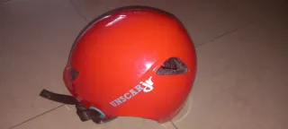 Casco infantil de color rojo, con el logo UNSCARjr en blanco. Ideal para proteger en actividades deportivas. - Diseño con ventilación. - Correa ajustable.
